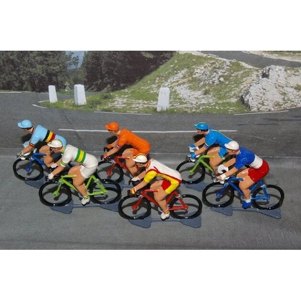 You can load up to 10 photo or images of the jersey, bike,helmet, gloves ...Best if you have it is to send the original file used by the jersey manufacturer (pdf fiue). Please precise also the figure type you want (see unpainted cyclist category), if you want a plastic bag with card packaging, quantity and expected delivery time.