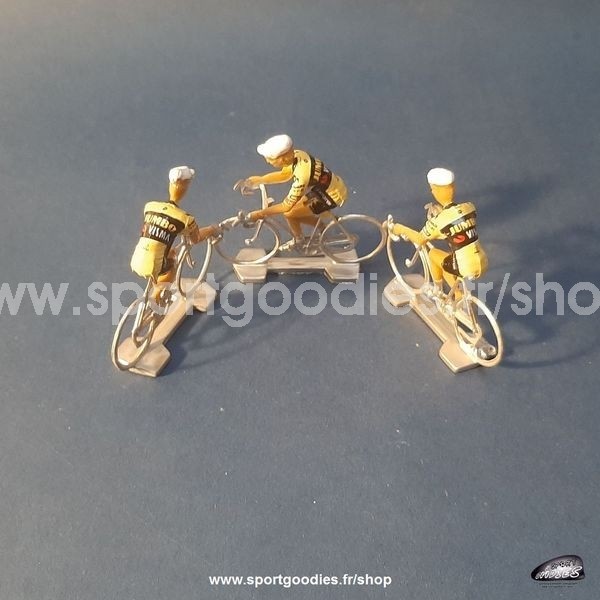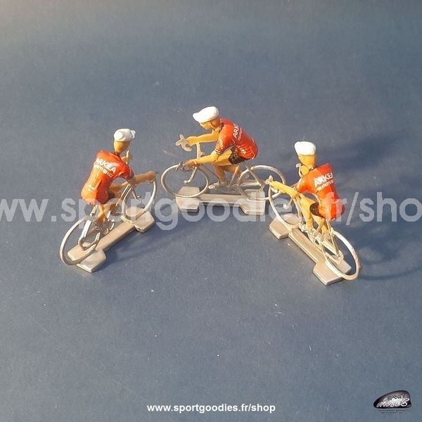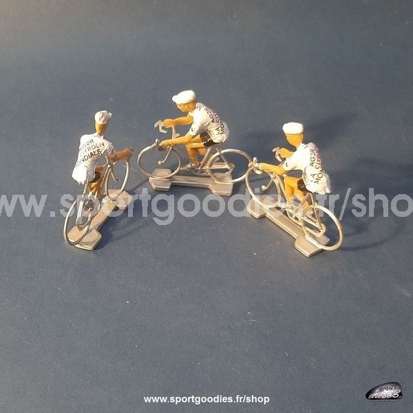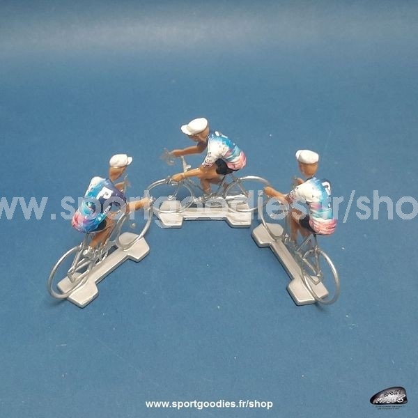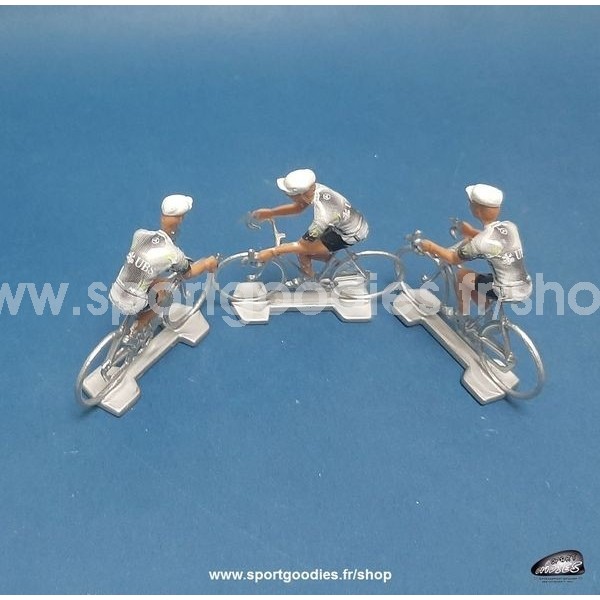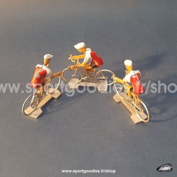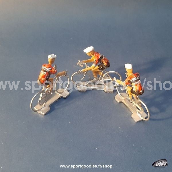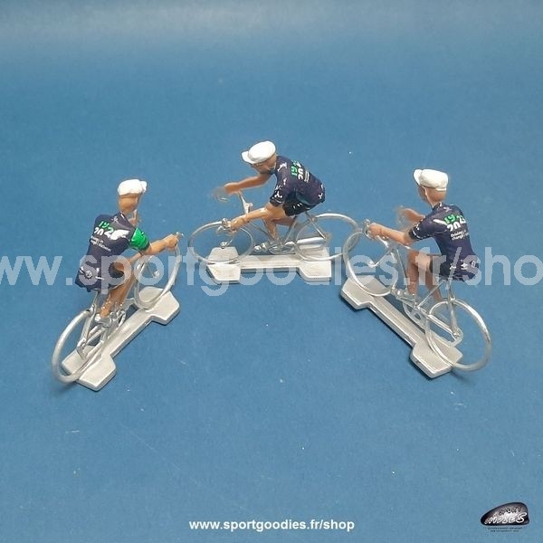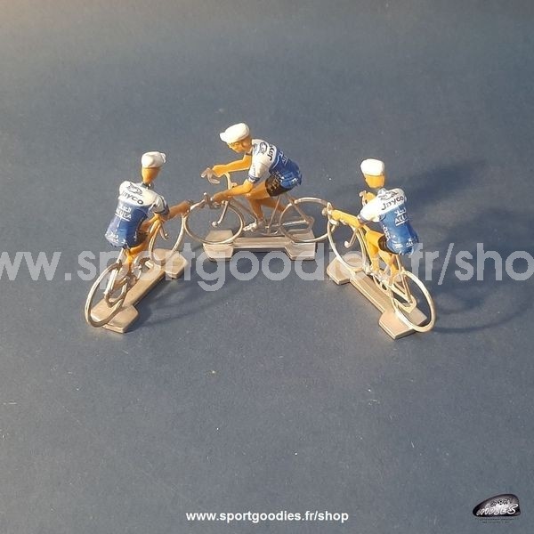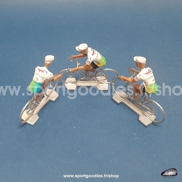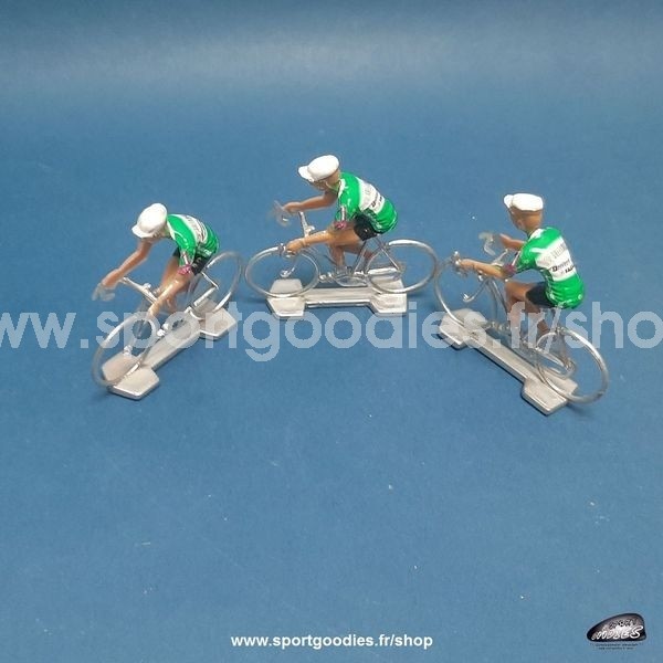 2023 - Set of 3 plastic cyclists - Cofalu model - Select your team - The jersey is made of a printed adhesive to be sticked on the rider back. 1/32 Scale.