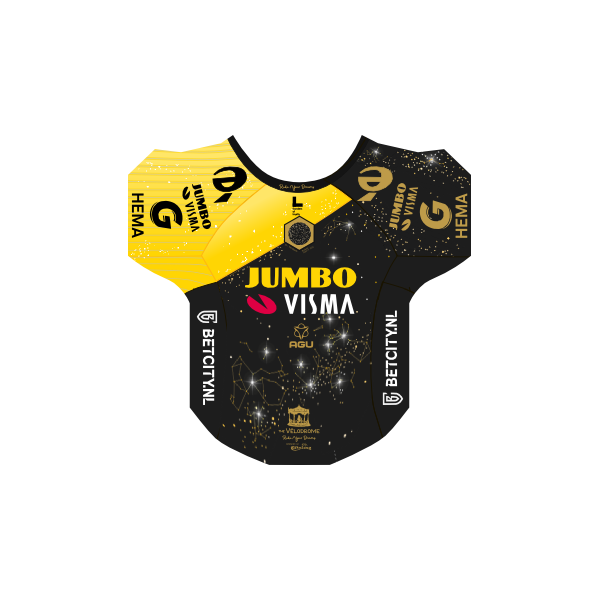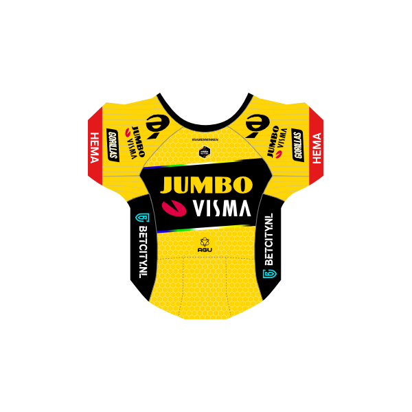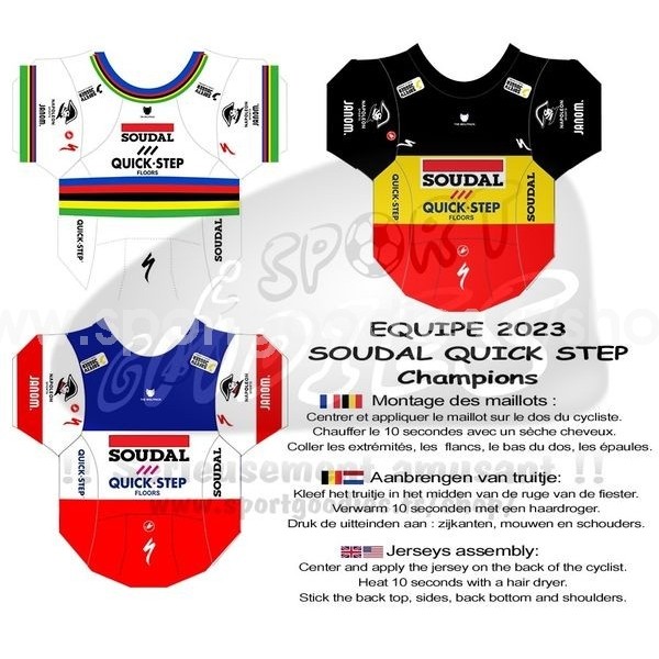 Jerseys assembly: Center and apply the jersey on the back of the cyclist. Heat 10 seconds with a hair dryer. Glue the ends, sides, lower back, shoulders.