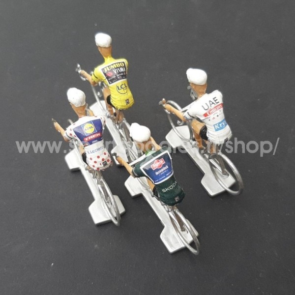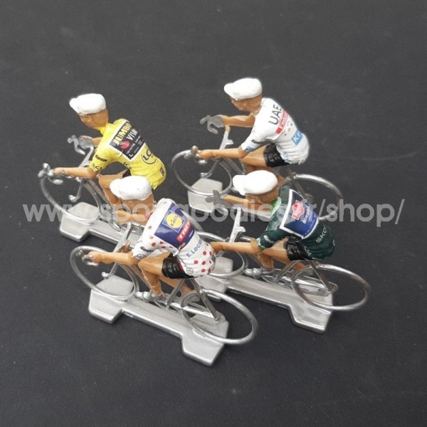 Set of 4 plastic cycling figures Tour de France - Real Leader jerseys 2023 - Cofalu Cyclists