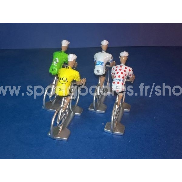 Set of 4 plastic cycling figures Tour de France - Leader jerseys 2022 with Santini sponsor - Cofalu Cyclists