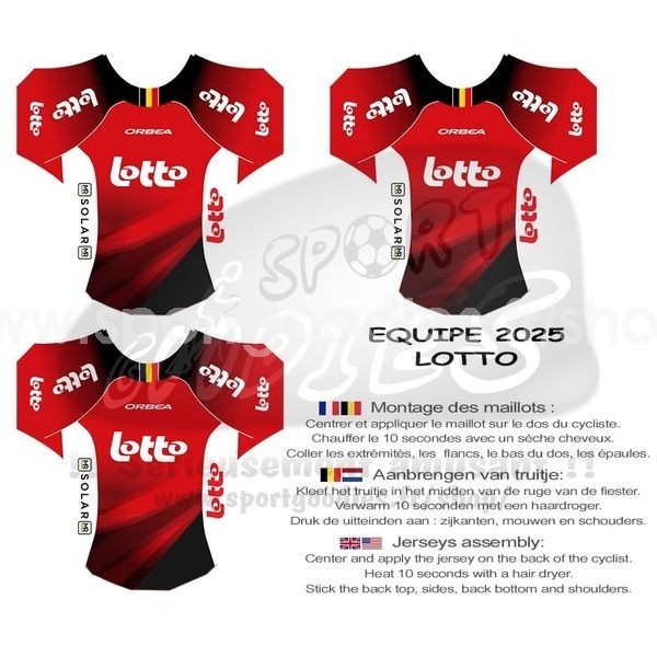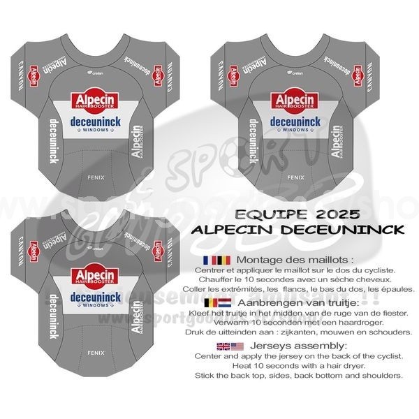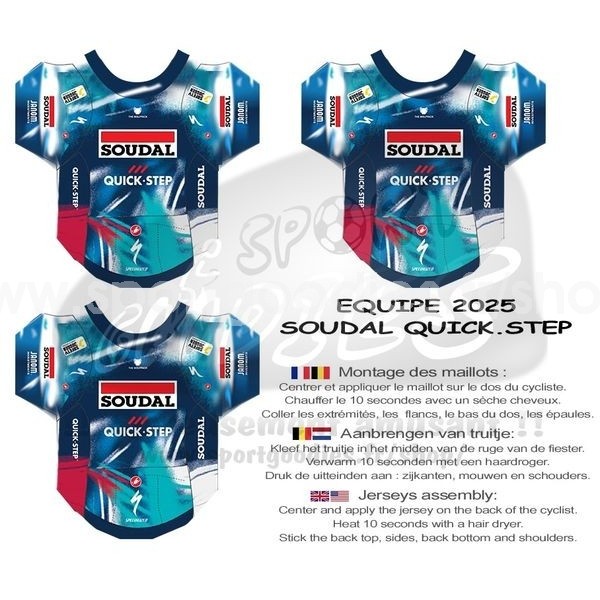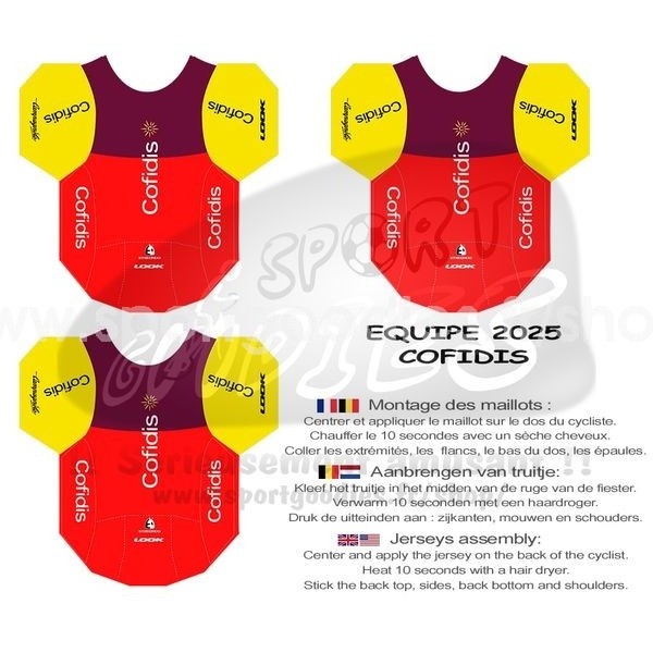 2025 - Set of 3 cyclists1/32 scale type Echappée Infernale - Select the team - The jersey is made of a printed adhesive sticked on the rider back. 1/32 Scale