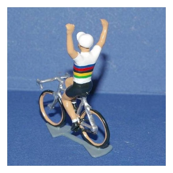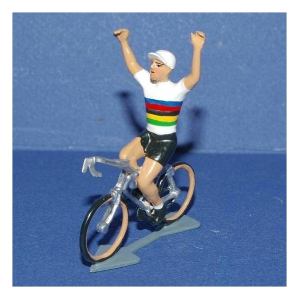 Cycling figure 1/32 scale. Hand painted by CBG Mignot. 100% made in France. Sitted rider material: zamak - Winner and drinker riders material : white meta