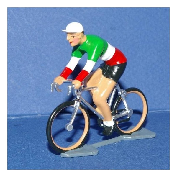 Cycling figure 1/32 scale. Hand painted by CBG Mignot. 100% made in France. Sitted rider material: zamak - Winner and drinker riders material : white meta