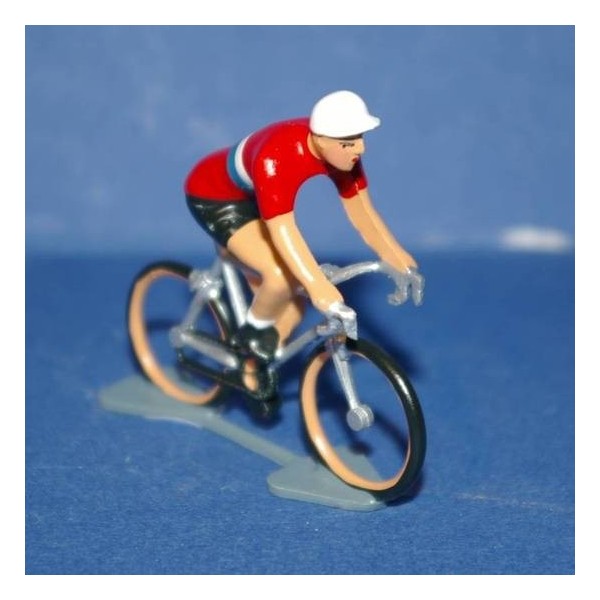 Cycling figure 1/32 scale. Hand painted by CBG Mignot. 100% made in France. Sitted rider material: zamak - Winner and drinker riders material : white meta