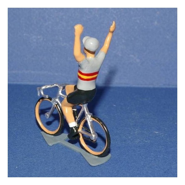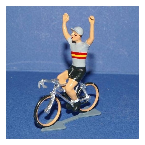Cycling figure 1/32 scale. Hand painted by CBG Mignot. 100% made in France. Sitted rider material: zamak - Winner and drinker riders material : white meta