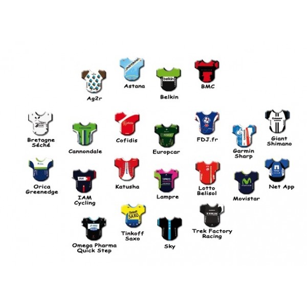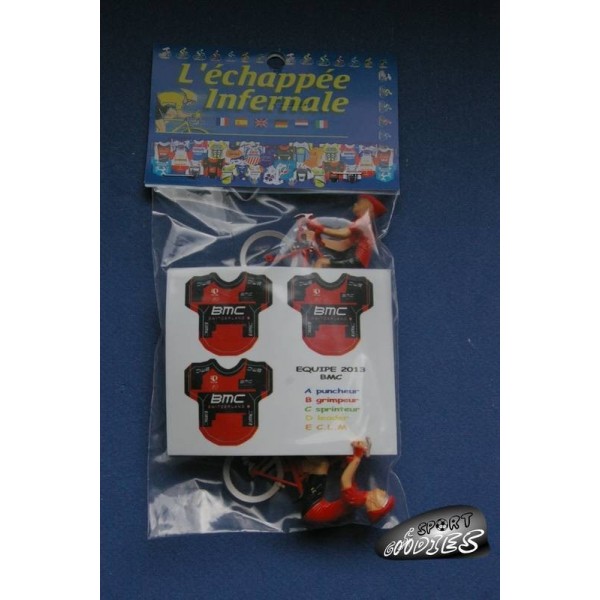 Set of 3 1/32 scale cycling rider figure. The jersey is made of a printed adhesive to be sticked on the rider back. Teams available are :