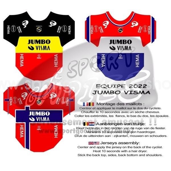 Set of 3 jerseys / stickers for 1/32 scale cycling rider figure.