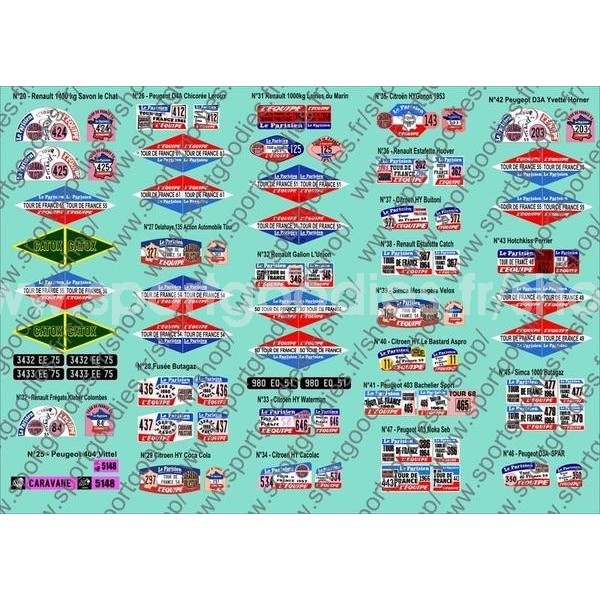 Water Decals - Collection Hachette advertising vehicles- #19 to #47 TDF identification plates - 1/43 Scale