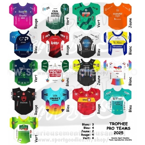 17 Pro Teams 2025 jerseys stickers conveninet for Echappée Infernale or Cofalu figures.
