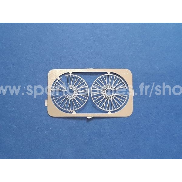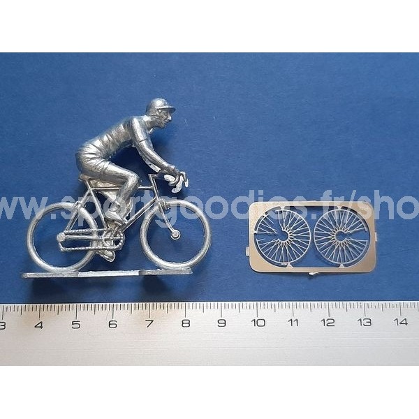 Les rayons s'adaptent sur les cyclistes en plastique de la marque Roger échelle 1/35. Composant réalisé en photodécoupe à monter et à peindre si besoin. Collage avec colle maquette plastique ou cyanoacrylate. Voir nos autres produits similaires pour les cyclistes Cofalu,Salza, Roger ou Norev.