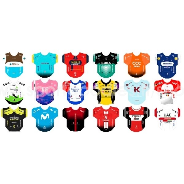 18 Stickers Equipes World Tour 2019 pour cyclistes 1/32