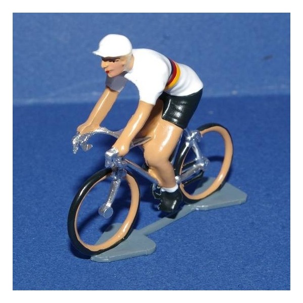 Coureur cycliste miniature échelle 1/32, peint à la main par CBG-Mignot. 100% fabriqué en France. Modèle assis en zamac