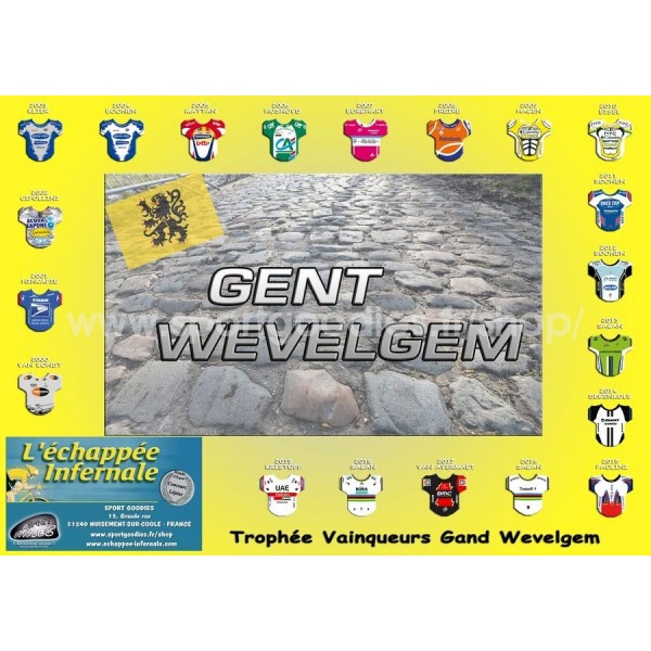 Trophée de 20 cyclistes miniatures. Les maillots sont représentés par des stickers posés dur le dos des coureurs. Présentés dans un blister transparent. Echelle 1/32