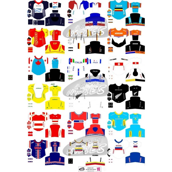 18 Maillots nationaux Jeux Olympiques Londres 2012.
