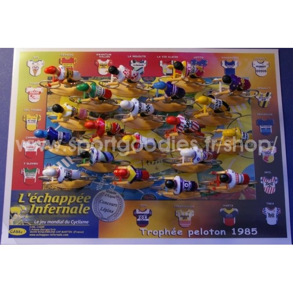 Trofeo di 20 corridori ciclisti a scala 1/32. Le maglie sono degli adhesivi stampati e incollati sul dorso dei corridorei. Presentati in una scattola trasparente