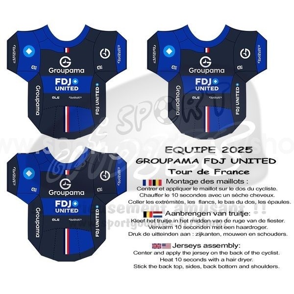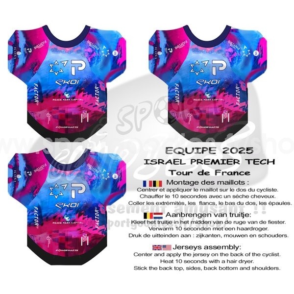 3 Stickers per ciclisti dell'Echappée Infernale o della Cofalu -. Le maglie sono degli adhesivi stampati da incollare sul dorso dei corridorei. Scala 1/32