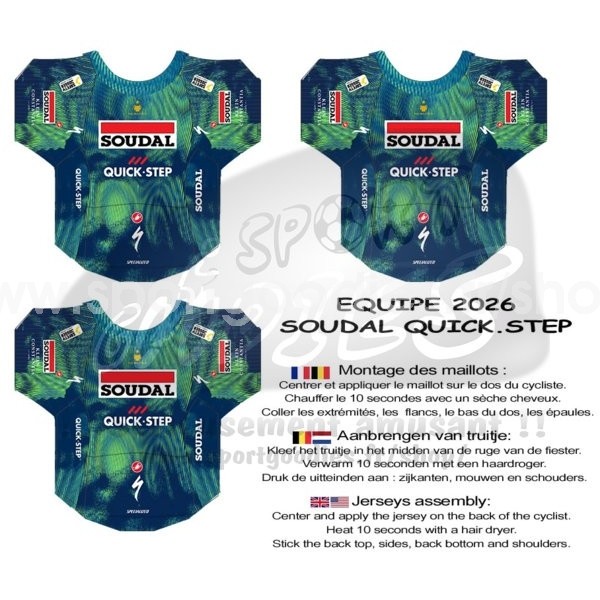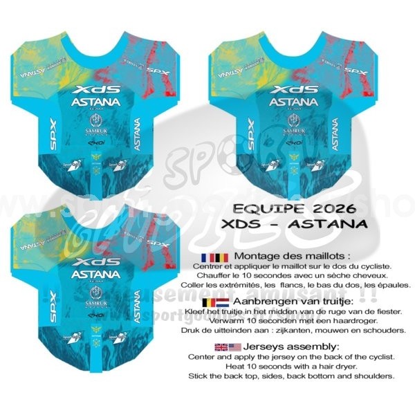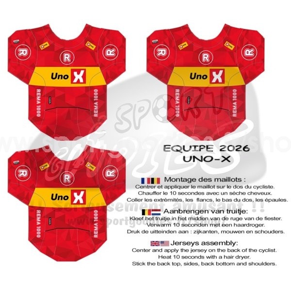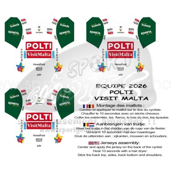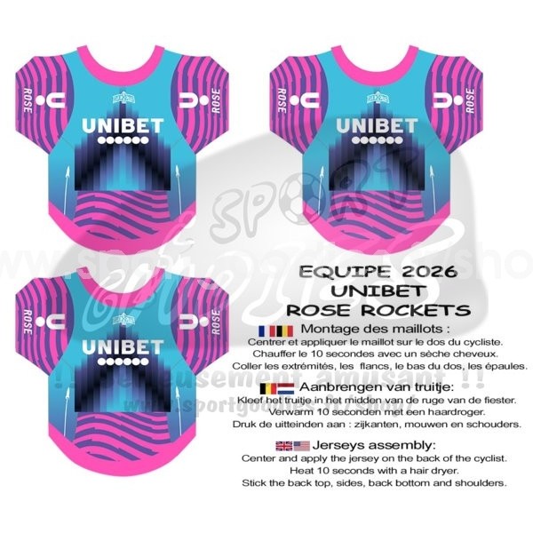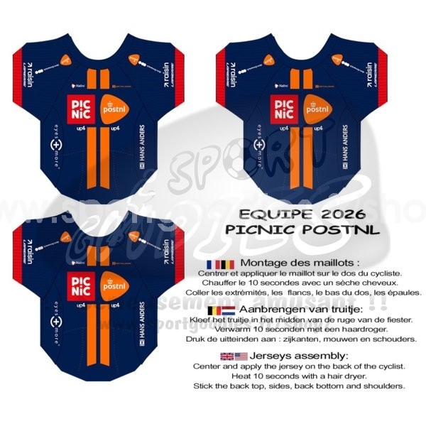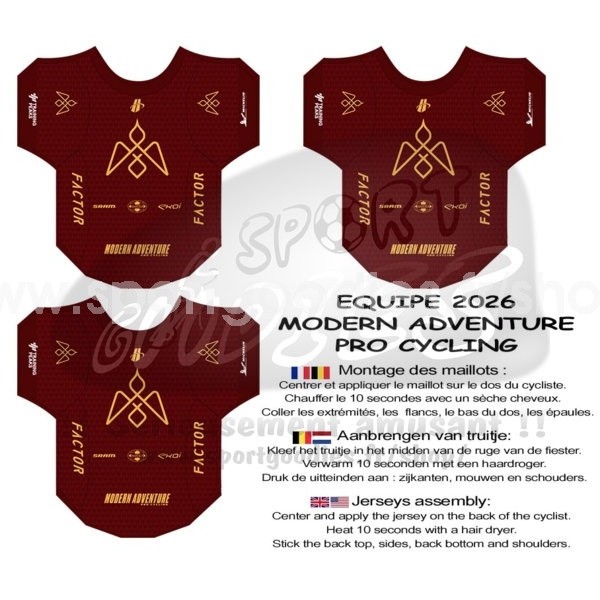 Montaggio delle maglie: Centrare ed applicare la maglietta sulla schiena del corridore. Scaldare 10 secondi con un asciugacapelli. Incollare le estremità del lato, parte bassa della schiena, delle spalle.