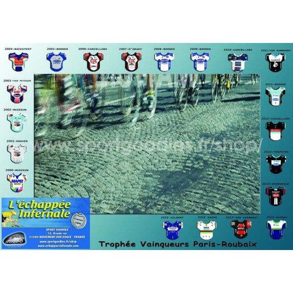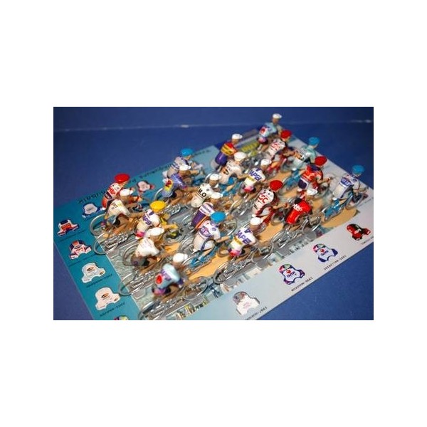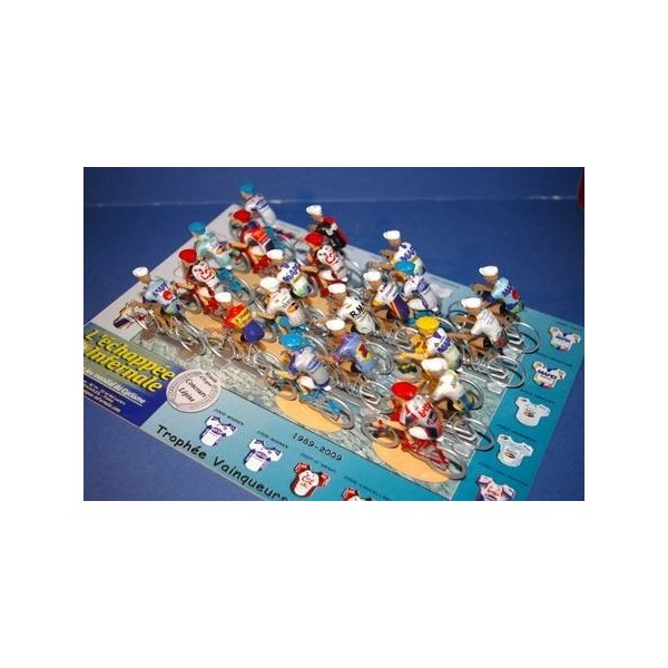 Trofeo di 20 corridori ciclisti a scala 1/32. Le maglie sono degli adhesivi stampati e incollati sul dorso dei corridorei. Presentati in una scattola trasparente